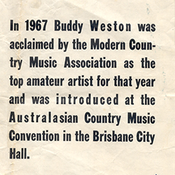 Buddy Weston is awarded First Place Winner at the Australasian Country Music Convention